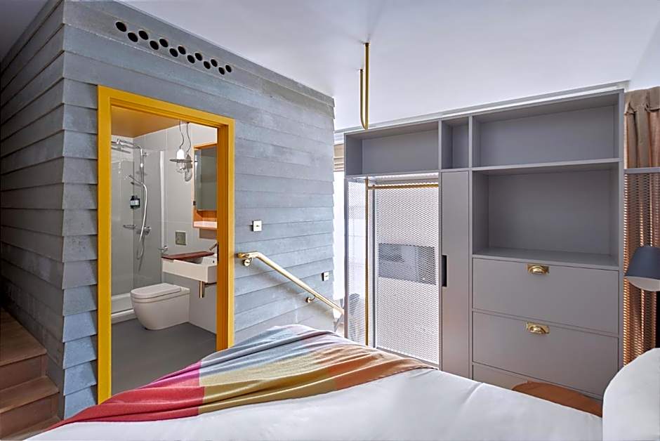 We call our 92 ft² Locke Studios our ‘standard rooms'. But with plenty of space to sleep, eat and live, they’re not your average boutique hotel room. You’ll have a king-size bed, as well as an iconic green L-shaped sofa for relaxing on. A fully-equipped kitchen with marble dining table, hob, washer/dryer, fridge/freezer and dishwasher, as well as lots of designer cooking gear.